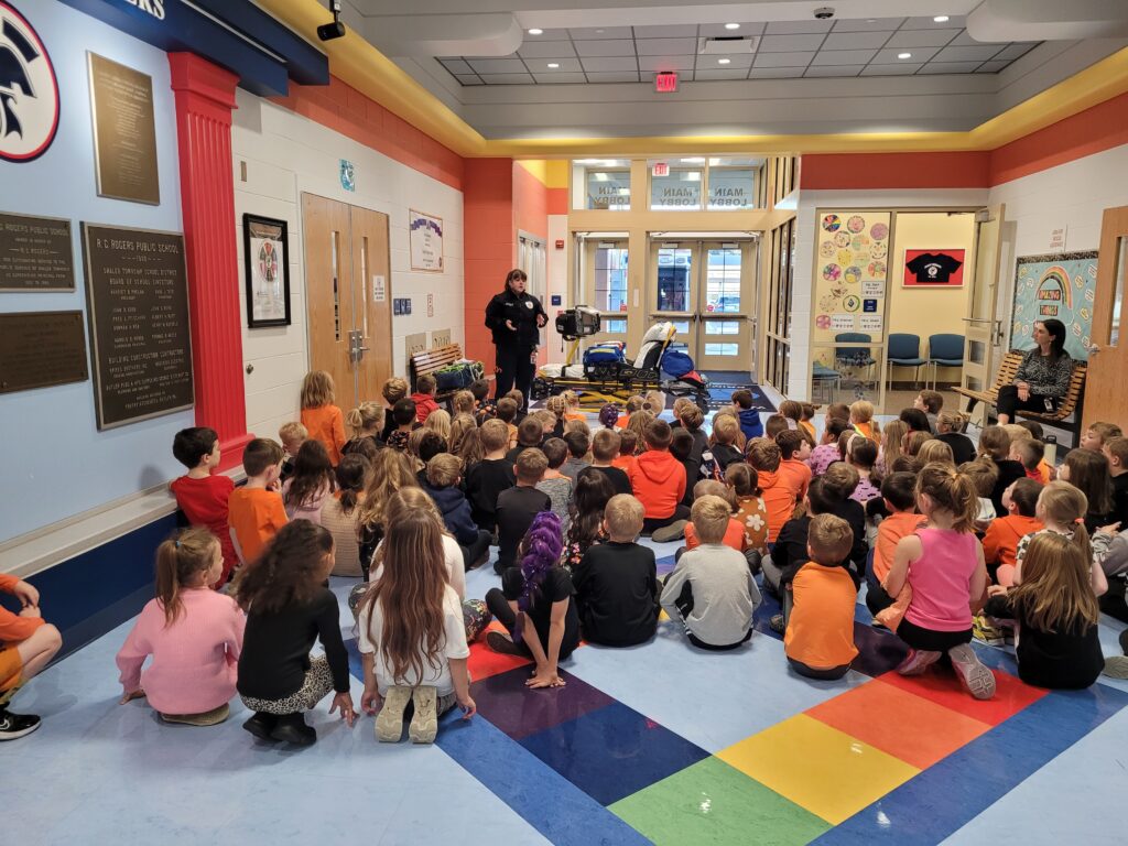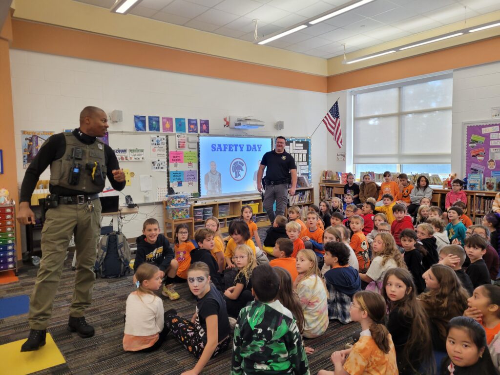 Resource Officer Wise and Officer Johnson presented lessons on Charlie Check First and Bus Safety for kindergarten and first-grade students, while second and third graders learned about internet safety and poison safety.
