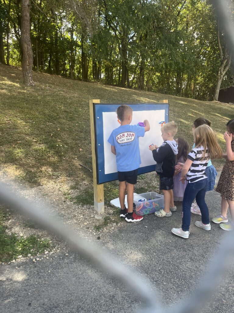 Over the summer Jonah Driver, son of Reserve Primary School Librarian Tracy Driver, invested his time to bring some fun and delight to students of Reserve. Jonah completed his Eagle Scout Project this summer by creating games and activities along the Kim Baysek-Young Walking Trail. There are now four activity stations for students to enjoy: a marble run, a xylophone, Connect 4 game, and a magnet board. Jonah also built and installed a free little library so children can enjoy books while outside at recess and after school when the field is used by the community.