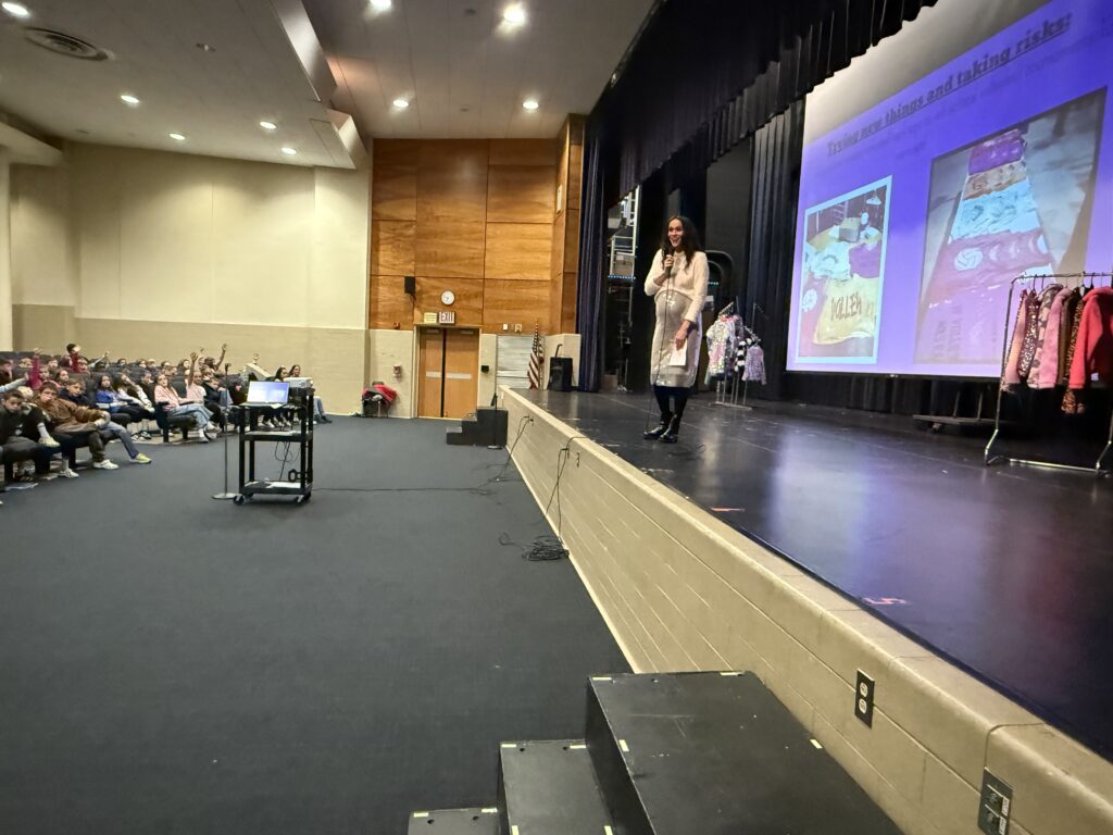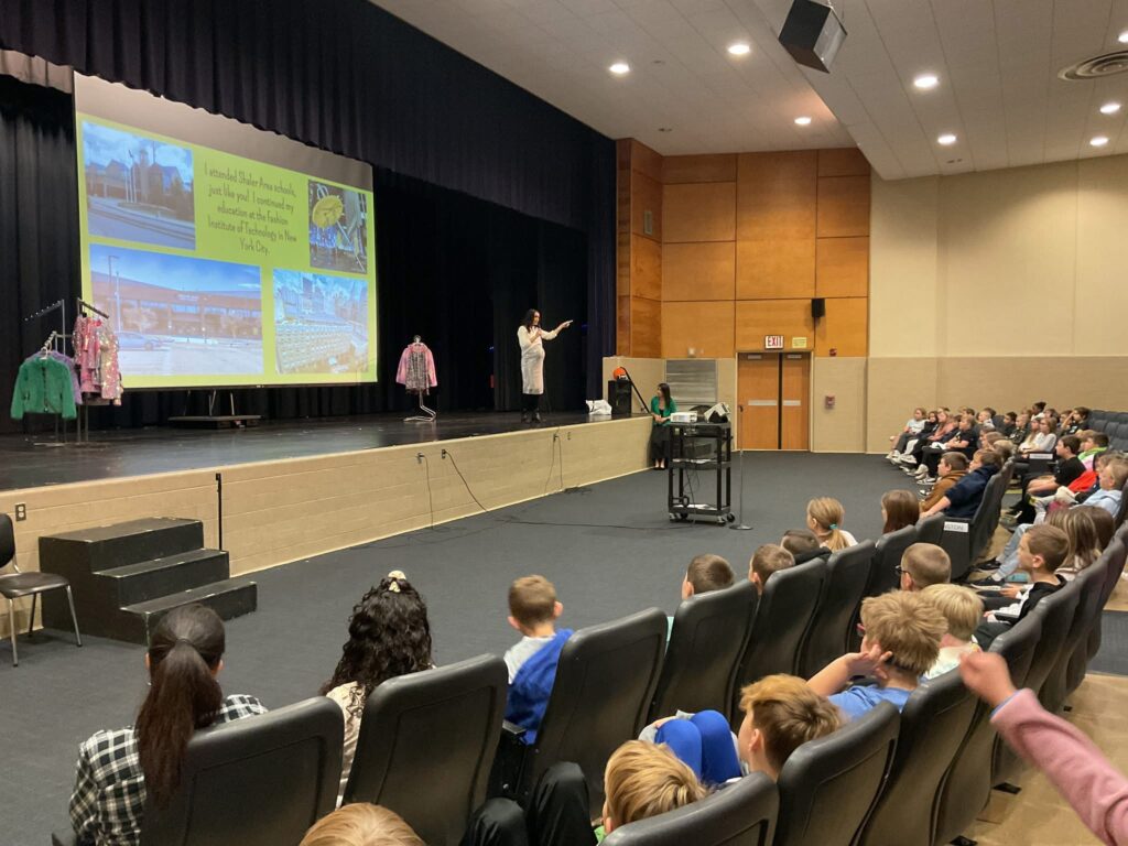 Shaler Area Elementary School was treated to a special visitor recently. Jamie Szramowski is a Shaler Area graduate to the core, attending Shaler Area schools from kindergarten through 12th grade. From a young age, she aspired to become a fashion designer. As she learned more from the arts offered throughout her schooling at Shaler Area, Jamie’s creativity flourished and her talents were sharpened. Her ninth-grade sewing teacher, Mrs. Rosenthall, inspired and encouraged Jamie to chase her dreams of becoming a fashion designer. Jamie graduated Shaler Area High School equipped with boundless creativity, a relentless work ethic and an unwavering confidence. She went on to thrive at the Fashion Institute of Technology in New York City. Jamie ventured to New York City with her outsized dreams at her fingertips; what once felt like an out of reach pipe dream for a Shaler Area student was taking shape. In 2017, she embarked on her own fashion designing business, MIA New York Clothing, and Jamie has never looked back, growing year over year.