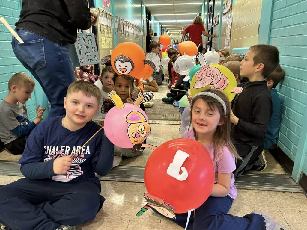 Before Thanksgiving, the students read about the balloons in the Macy’s Day Parade in Balloons Over Broadway and created their own balloons, which they proudly showcased during a parade through the halls for all to see. The event even included some special performances from the first-grade teachers.