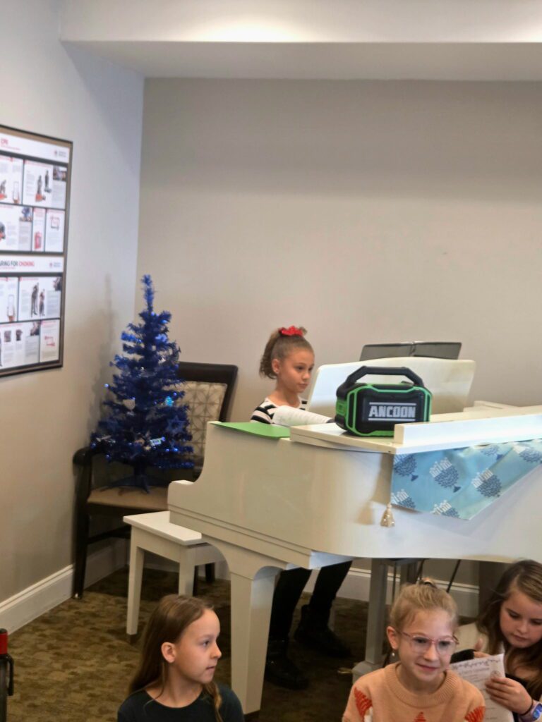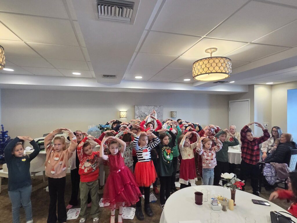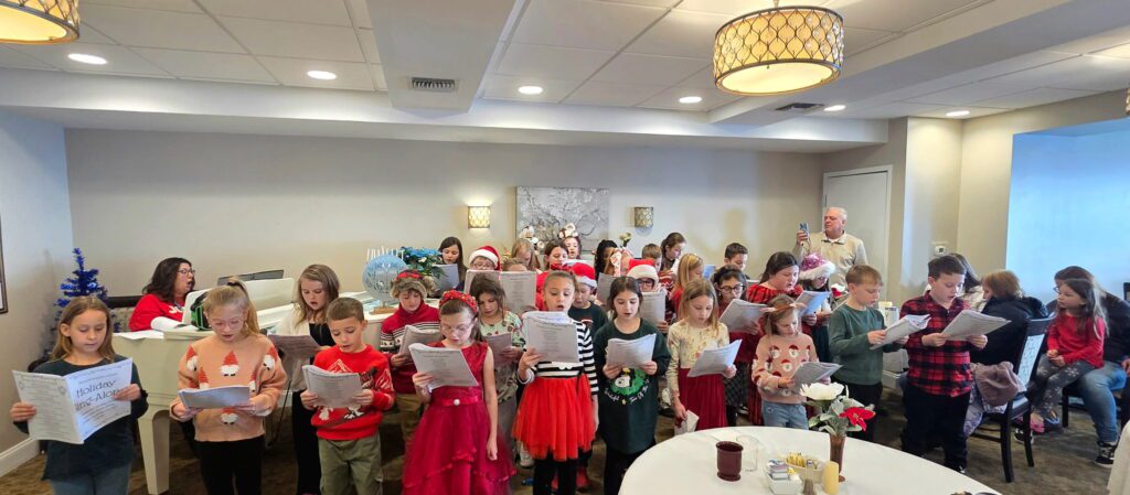 In December, third-grade volunteers from Marzolf Primary shared the spirit of the season at Fair Oaks Senior Living Facility by singing holiday carols for the residents. It was a most precious gift of time and talent, bringing smiles to everyone in attendance.