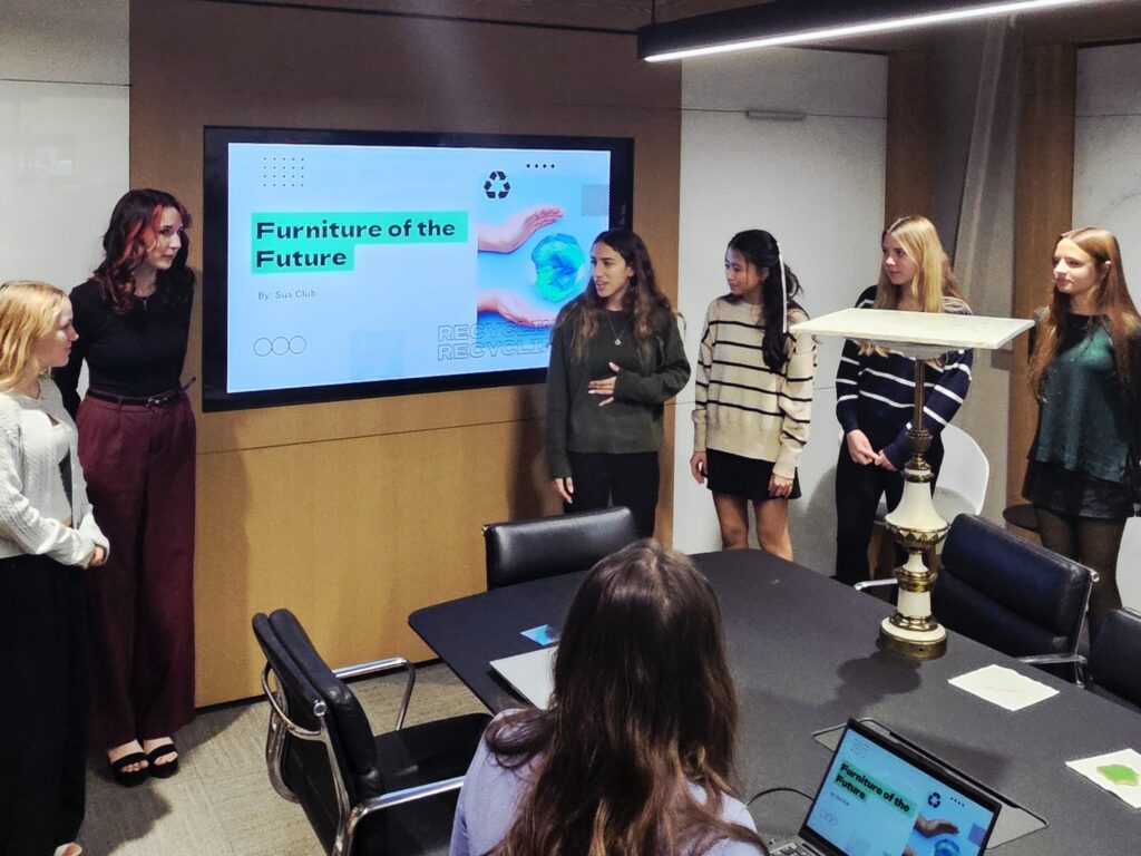 In December, The Shaler Area Sustainability Club (Emma, Cass, Rylin, Violet, Abby, Kori, and Ms. Nilson) presented their “Furniture of the Future” project to Workscape, Inc. The students represented Shaler Area with excellence.