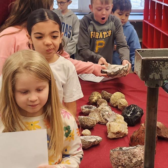 Students at Burchfield Primary School had a hands-on lesson in the wonders of the natural word. Geo Jeff Smith is a local geologist who shares his love of Earth science with students and the community. As a follow-up to their Rocks and Minerals science unit, the third-grade teachers invited Mr. Smith to Burchfield Primary for an engaging presentation of his adventures. He shared interesting facts, a slideshow, and visuals that kept students attentive and curious. In addition, the students asked thoughtful questions and showed great excitement as they learned more about the world beneath their feet!
