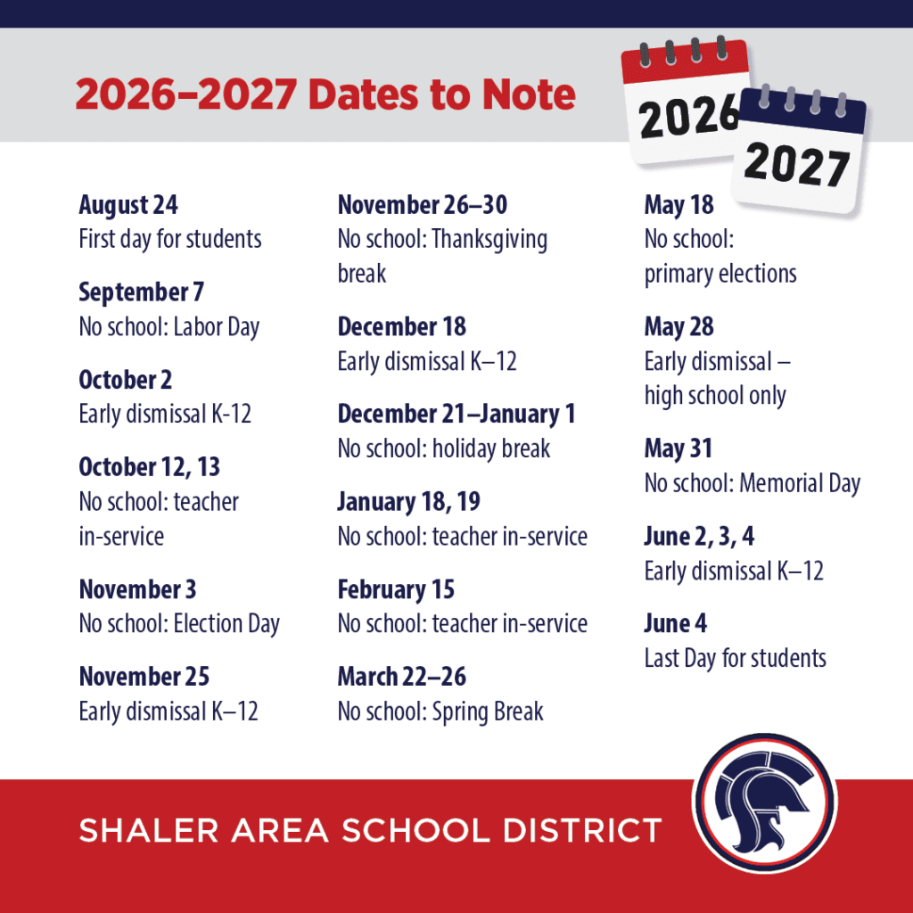 At the February 18 Board of School Directors meeting, the Shaler Area Board officially approved the 2026–2027 School Calendar.